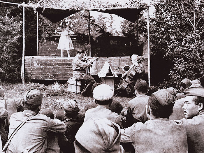 Театры юного зрителя во время войны не прекращали работу. В их репертуаре были как сказки, так и пьесы с ярким воспитательным посылом: «Сказка о правде» М. Алигер, «Сын полка» В. Катаева, «Город мастеров» Т. Габбе. Многие ТЮЗы оказались в эвакуации и обслуживали одновременно детскую и взрослую аудиторию, выезжая в тыловые районы и на стройки.